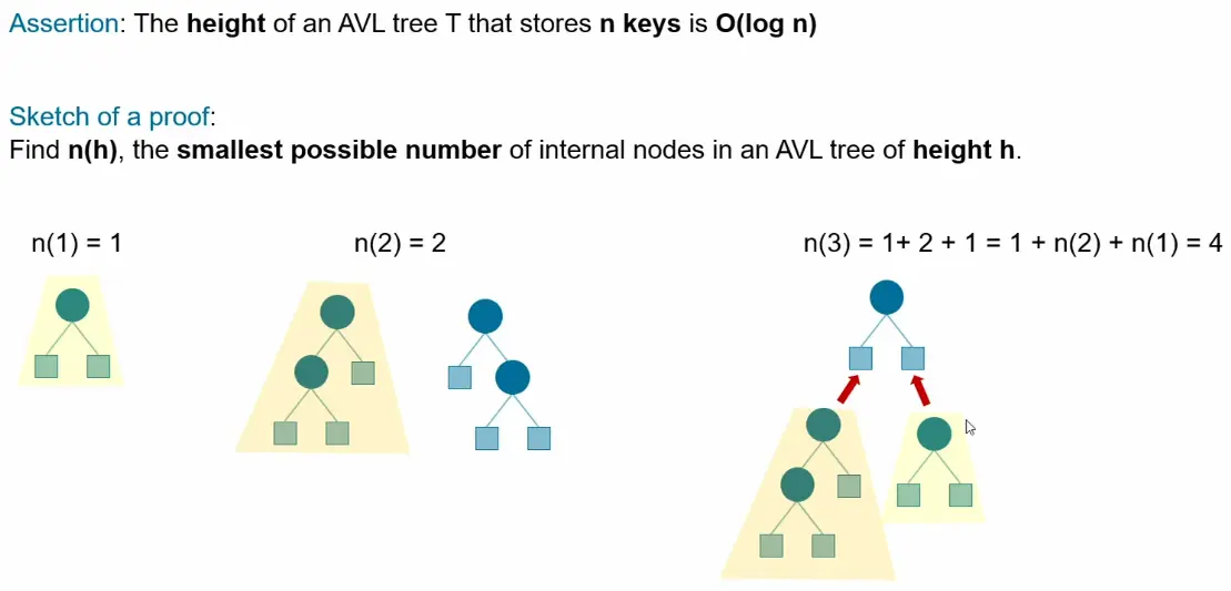 Let n(h) = minimum nodes in an AVL tree of height h.