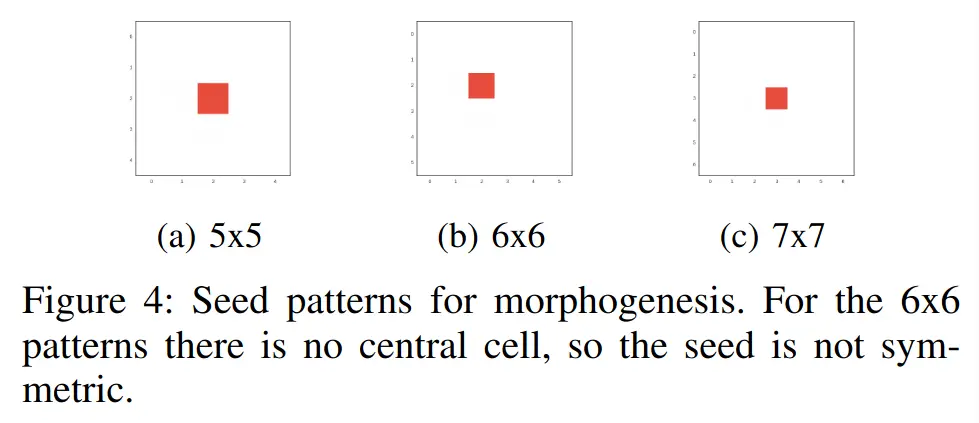- CA-NEAT evolves CPPNs (as the CA’s transition rule) with NEAT, so a single genome maps local neighborhood states → next state. Phenotypes then emerge via self-organization. Targets: 2D morphogenesis and replication benchmarks.