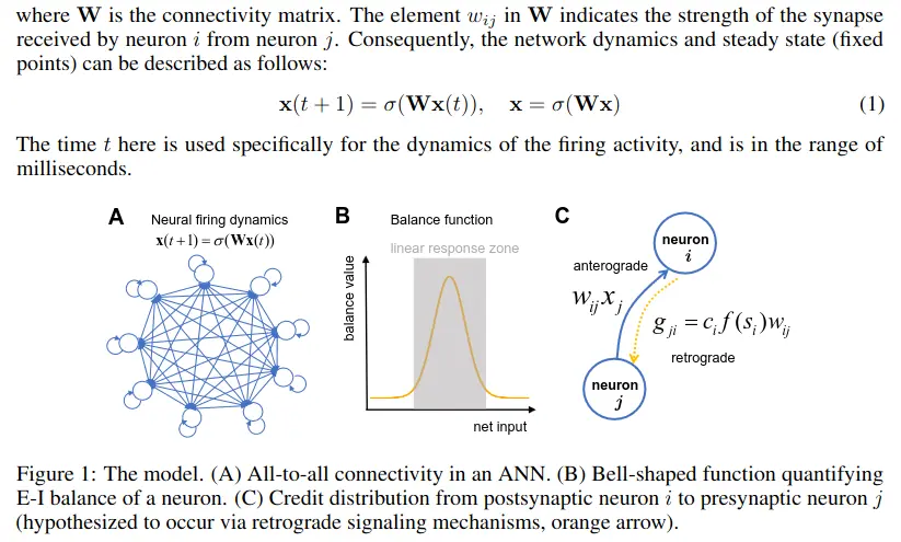 The core conceptual foundation of our neuroplasticity framework is the maintenance of excitation-inhibition (E-I) balance of neurons. E-I balance refers to the equilibrium between excitatory and inhibitory inputs to neurons. Maintaining this balance has been shown to help direct neuronal firing toward the linear response zone, which is essential for efficient information processing and representation.