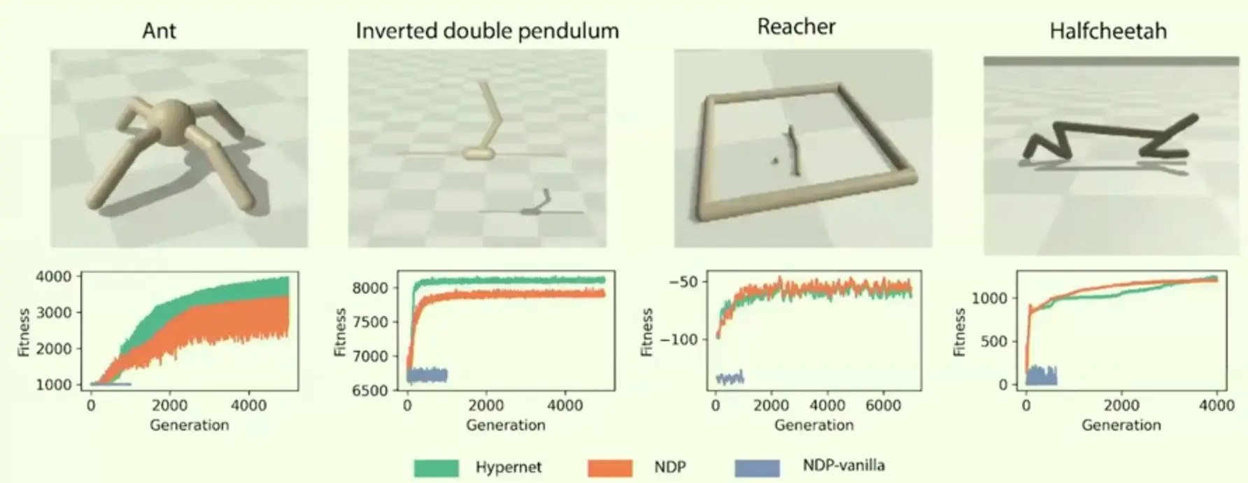- With these, a developmental process that grows topology and weights matches a single-shot indirect generator and is competitive with direct weight evolution on Brax RL tasks.