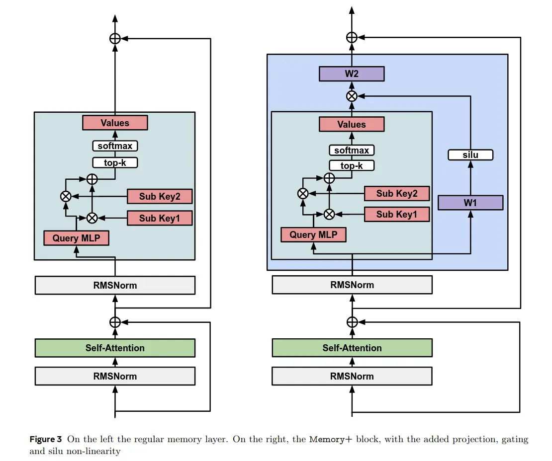 Meta trained it at scale, with some modifications, but I also like the figure for the original one on the left: (“Memory Layers at Scale”)