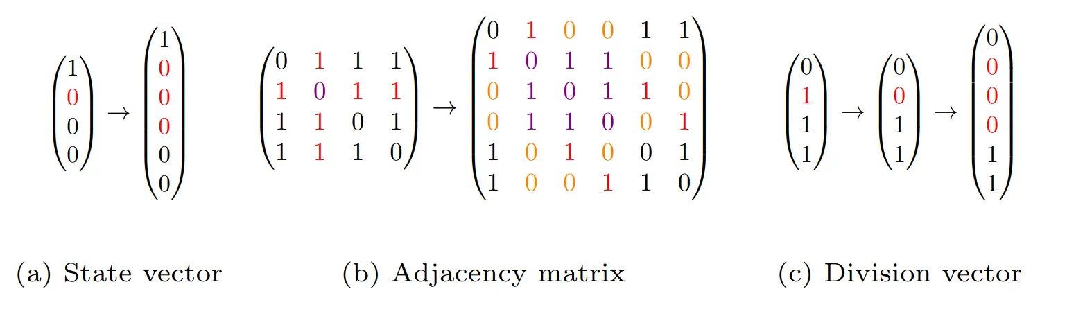 R:{0,…,d}→{0,1}(node state update)R(c(vt))=s(vt+1)R′:{0,…,d}→{0,1}(node division decision)R′(c(vt))={1,if c(vt) leads to a division0 otherwise