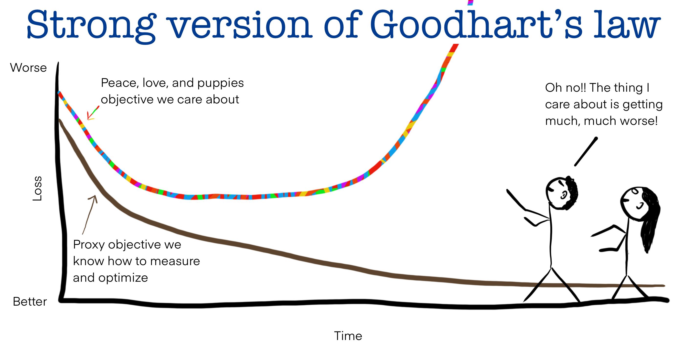 The strong version of Goodhart’s law: When a measure becomes a target, if it is effectively optimized, then the thing it is designed to measure will grow worse.