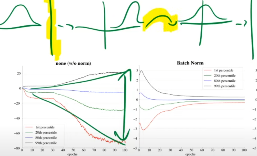 Batch norm transforms data back into normal distribution after each layer, so numbers don’t get to big / small over time (continously re-centering and re-scaling the data):