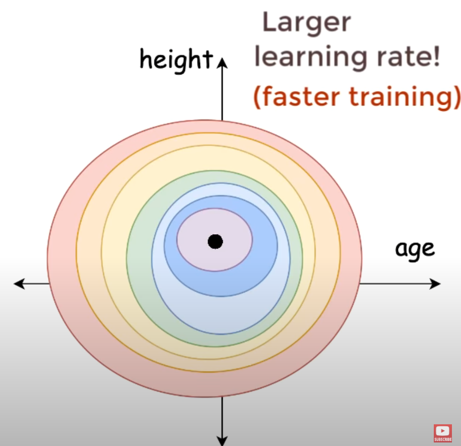 Also aids model stability → Inputs are in simmilar ranges → More simmilar weights + Helps to prevent vanishing gradients / exploding gradients