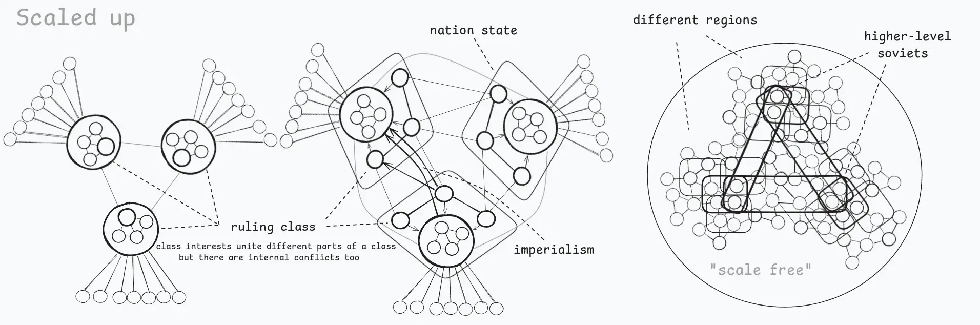 → Pure horizontalism / anarchism: limited coordination, can’t scale, everyone reinvents the wheel, local knowledge never gets integrated