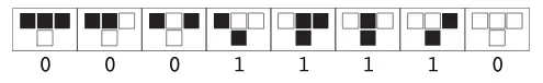 Each configuration maps to a new state (0 or 1) for the center cell: