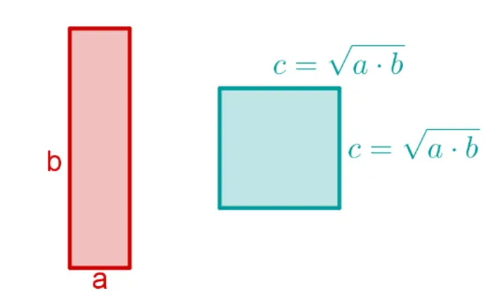 The geometric mean is the length of square, which has the same area as a