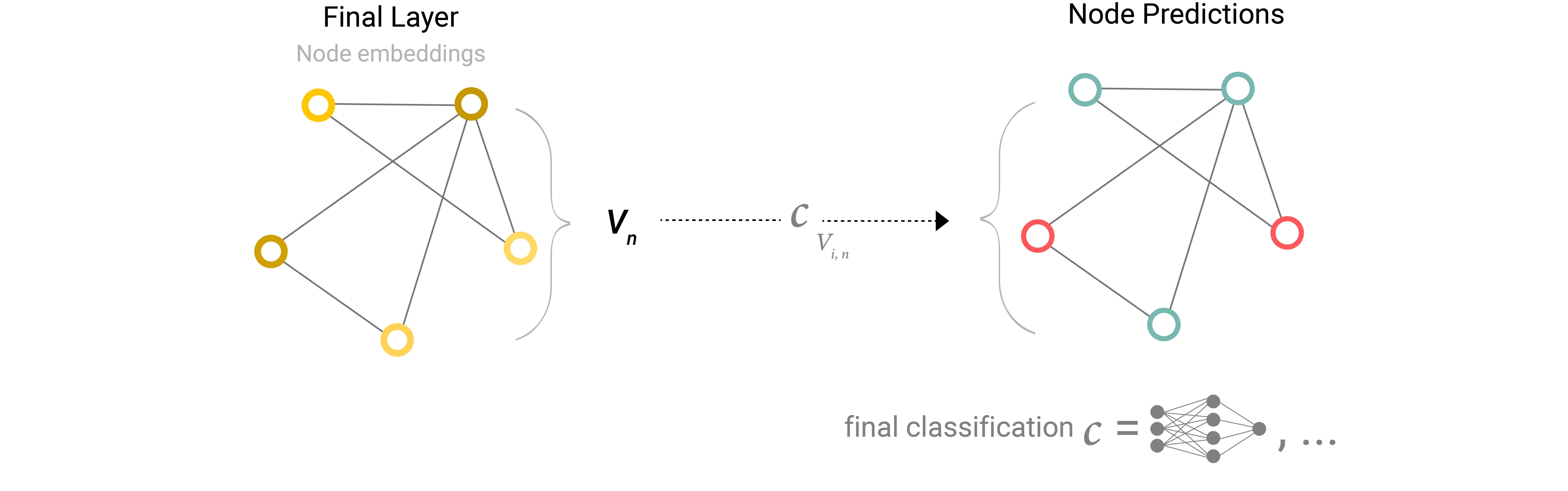 For classification, we can then simply apply the same classifier network for each node embedding: