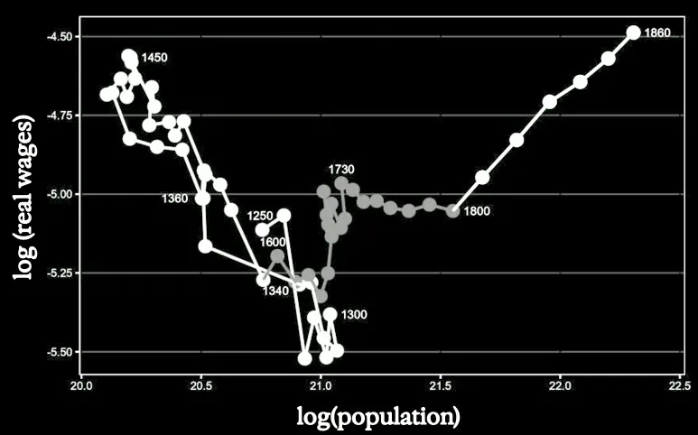 External metabolism → heaps of extra free energy → population skyrockets + rising standard of living.