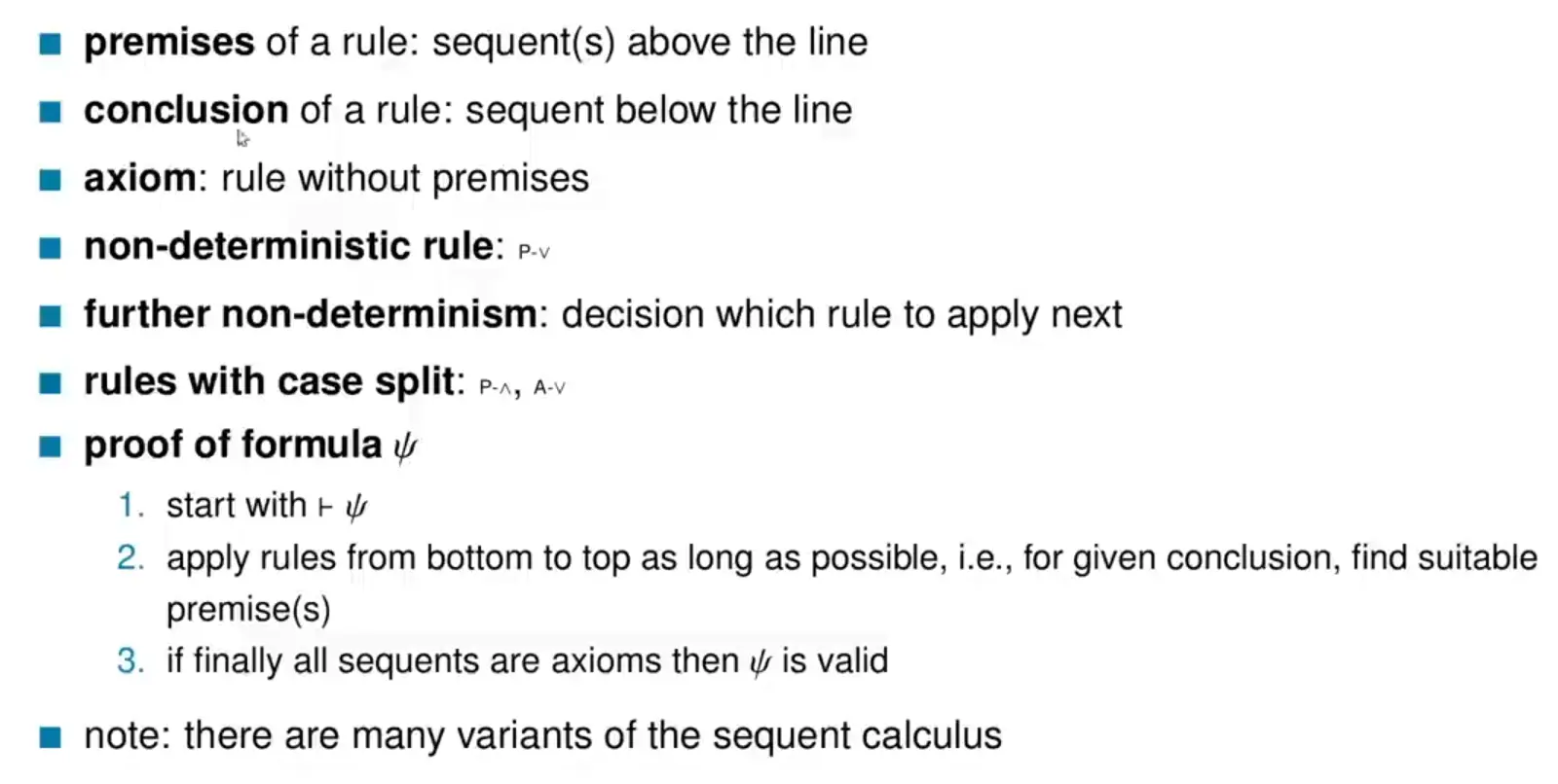 … is not a contradiction → is “erfüllbar” (satisfiable).… is true whenever is true. … is true whenever both and are true. … is not necessarily true whenever is true (it also depends on ). … is always true (tautology). … is never true (contradiction). … if is true and implies , then must also be true (modus ponens). … from falsehood, anything follows (ex falso quodlibet).