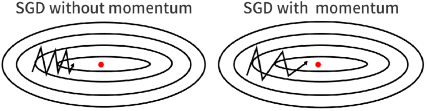 This helps to smooth out the updates/approximate curvature to find a better path towards the minimum. Essentially: If past updates all point in the same direction, we’re more confident of taking large steps in that direction.