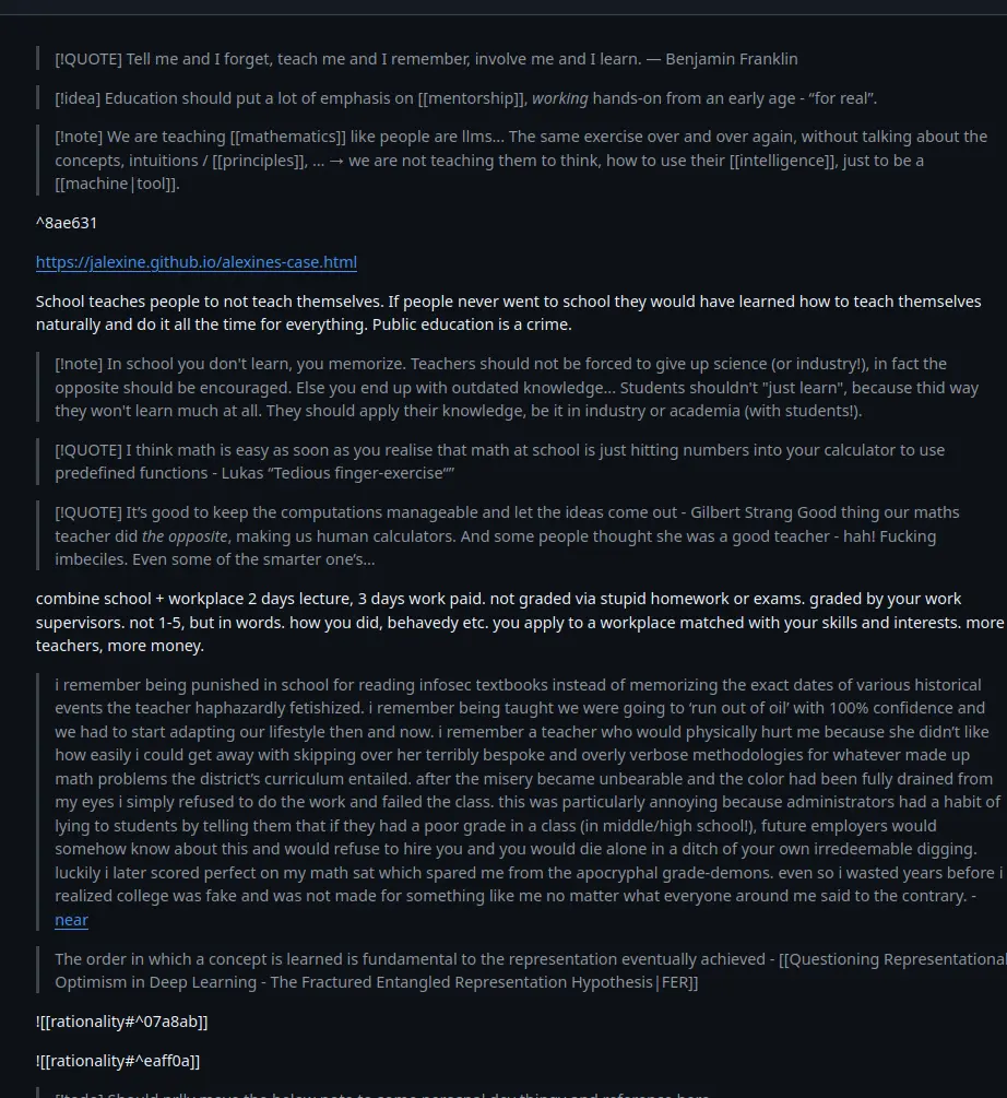 How the brain organizes information), which will also be basically blank, except for a single link with the url and an obsidian link towards[[artem kirsanov]]- In the atomic notes I create from a specific video, I have a section