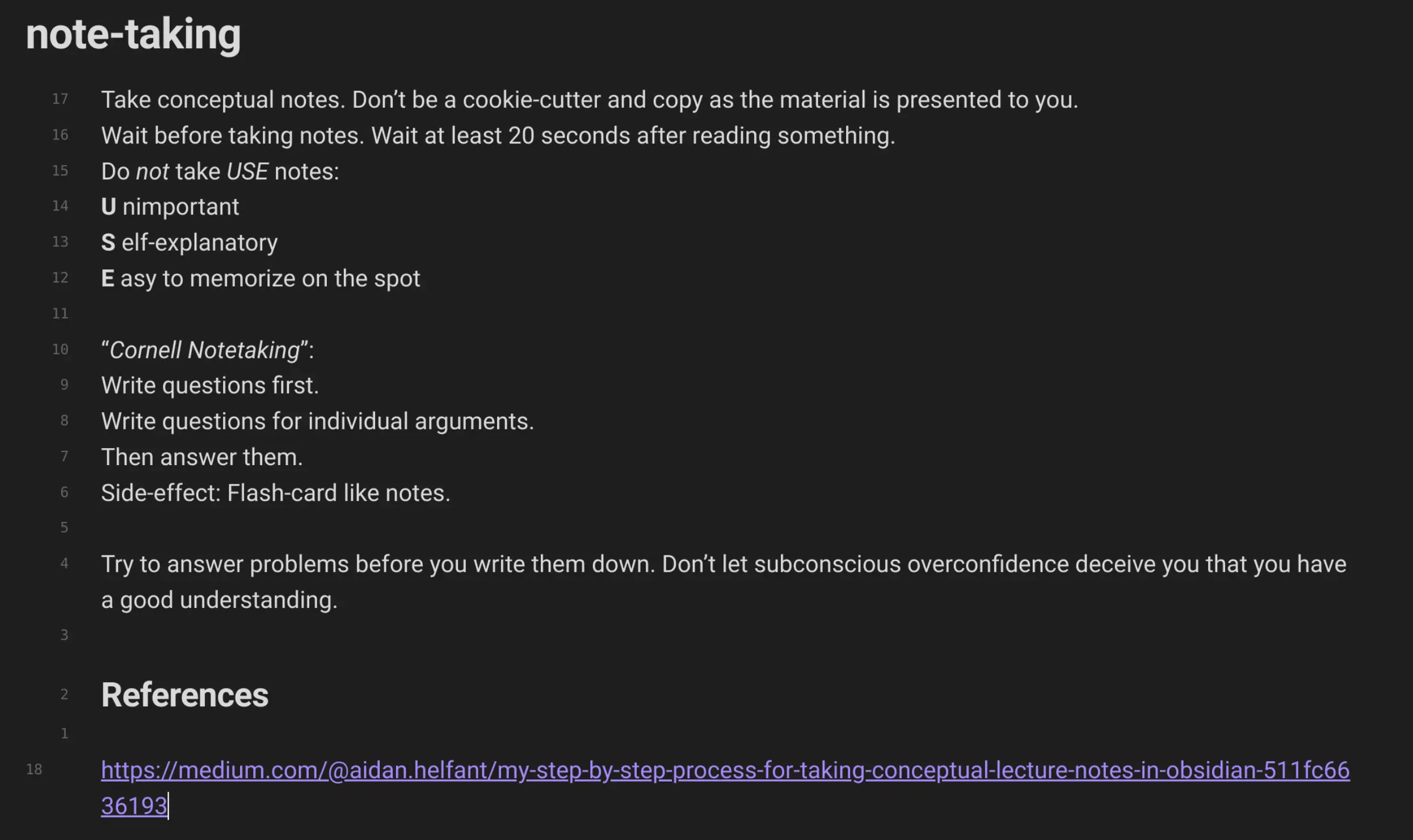 Note taking principles