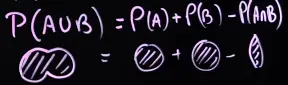 For non-disjoint events, we need to subtract the intersection, so we don’t count it twice (inclusion-exclusion principle). P(A∪B)=P(A)+P(B)−P(A∩B)