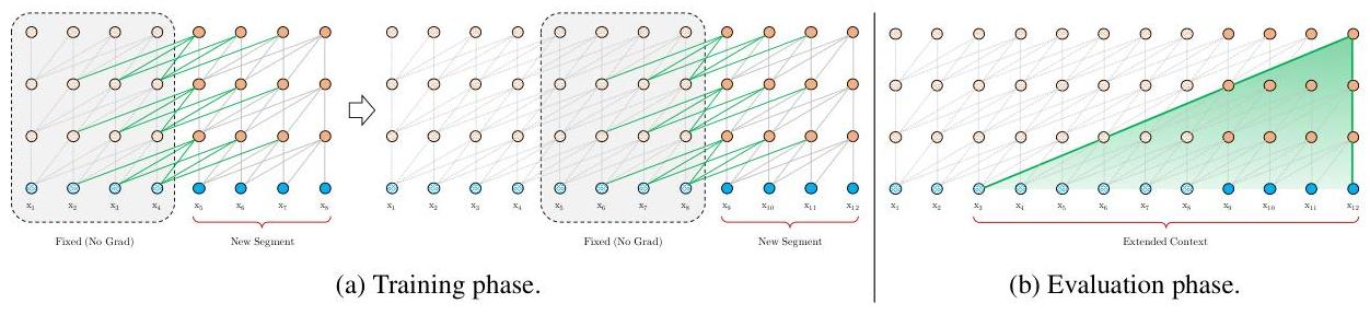 Since we progress in time, this creates a shifting effect, which allows for much longer effective context lengths, while still being efficient (no re-processing of past segments, no quadratic attention over all past tokens, no gradients, etc.). 2