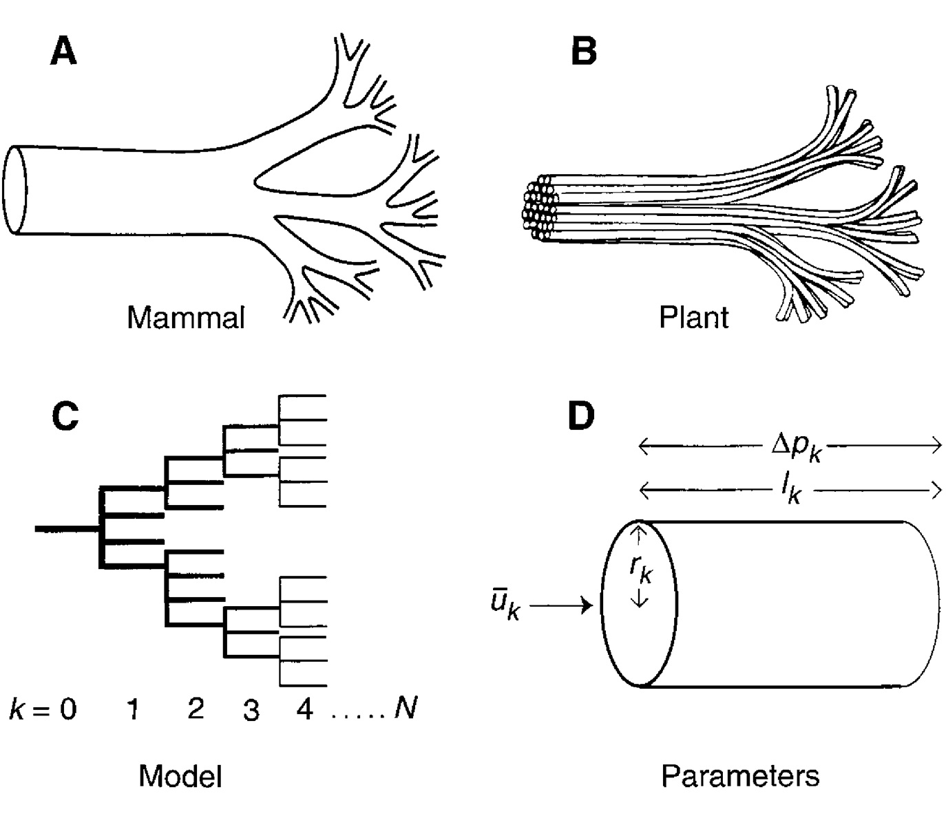 For the mathematically inclined: power laws relating two variables x and y take the general form y = ax b ↩