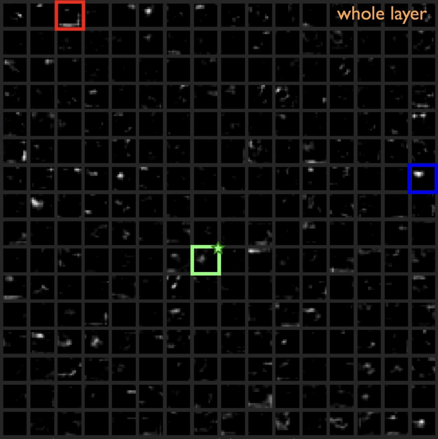 Less obviously, activation sparsity emerges in earlier layers too. Nonlinearities like the ReLU function naturally lead to sparsity, since they replace what would otherwise be negative activity with zero activity, and the resulting “quietness” in one layer spreads through subsequent layers. But in a more profound sense, sparse activity comes with the increasing specificity of every neuron’s response as the network learns.23