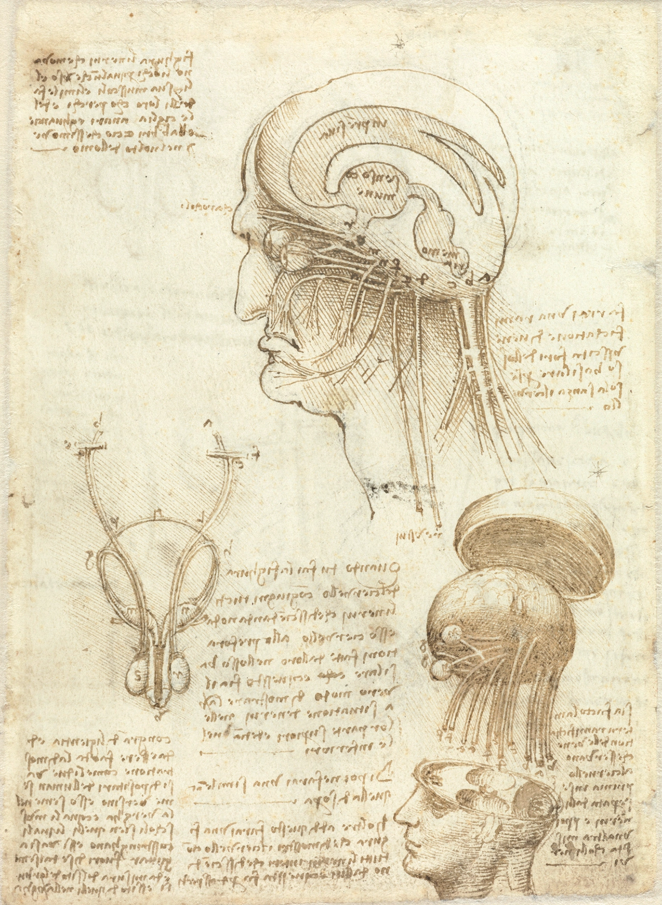 Leonardo da Vinci’s early understanding of neuroscience was largely based on received wisdom from Galen about the cognitive functions of three ventricles corresponding to imagination, reason, and memory. By 1509, da Vinci had carried out extensive dissections and experiments, including the use of wax to make moulds of the cerebral ventricles of an ox, resulting in groundbreaking anatomical accuracy but, as yet, little conceptual progress.