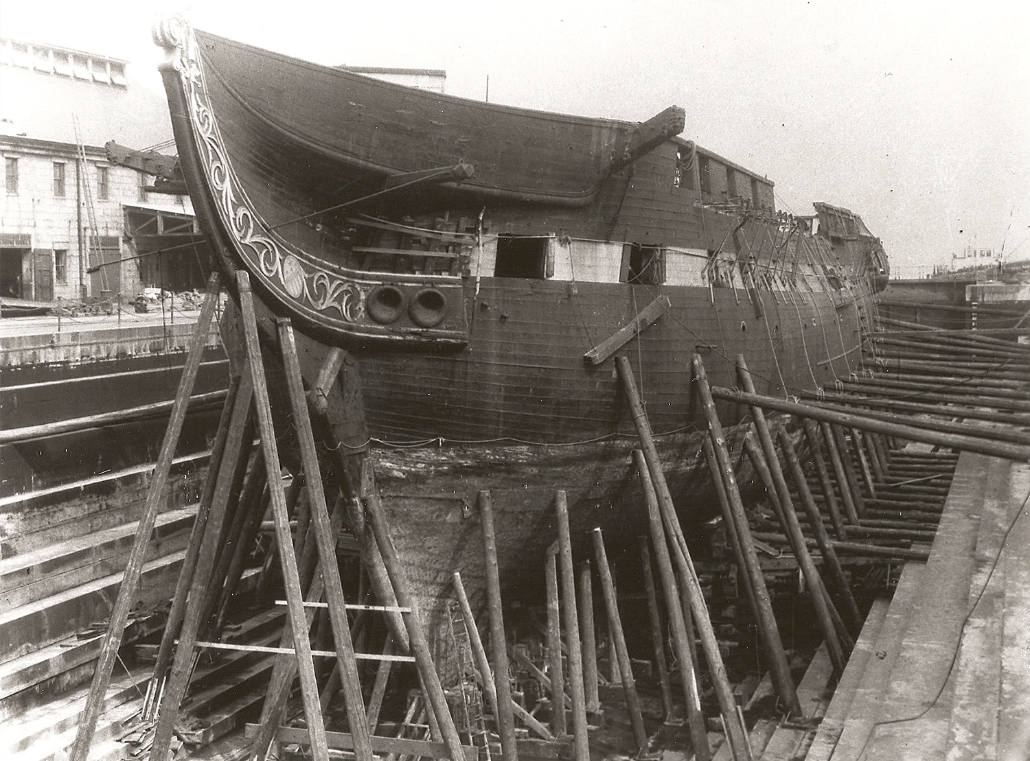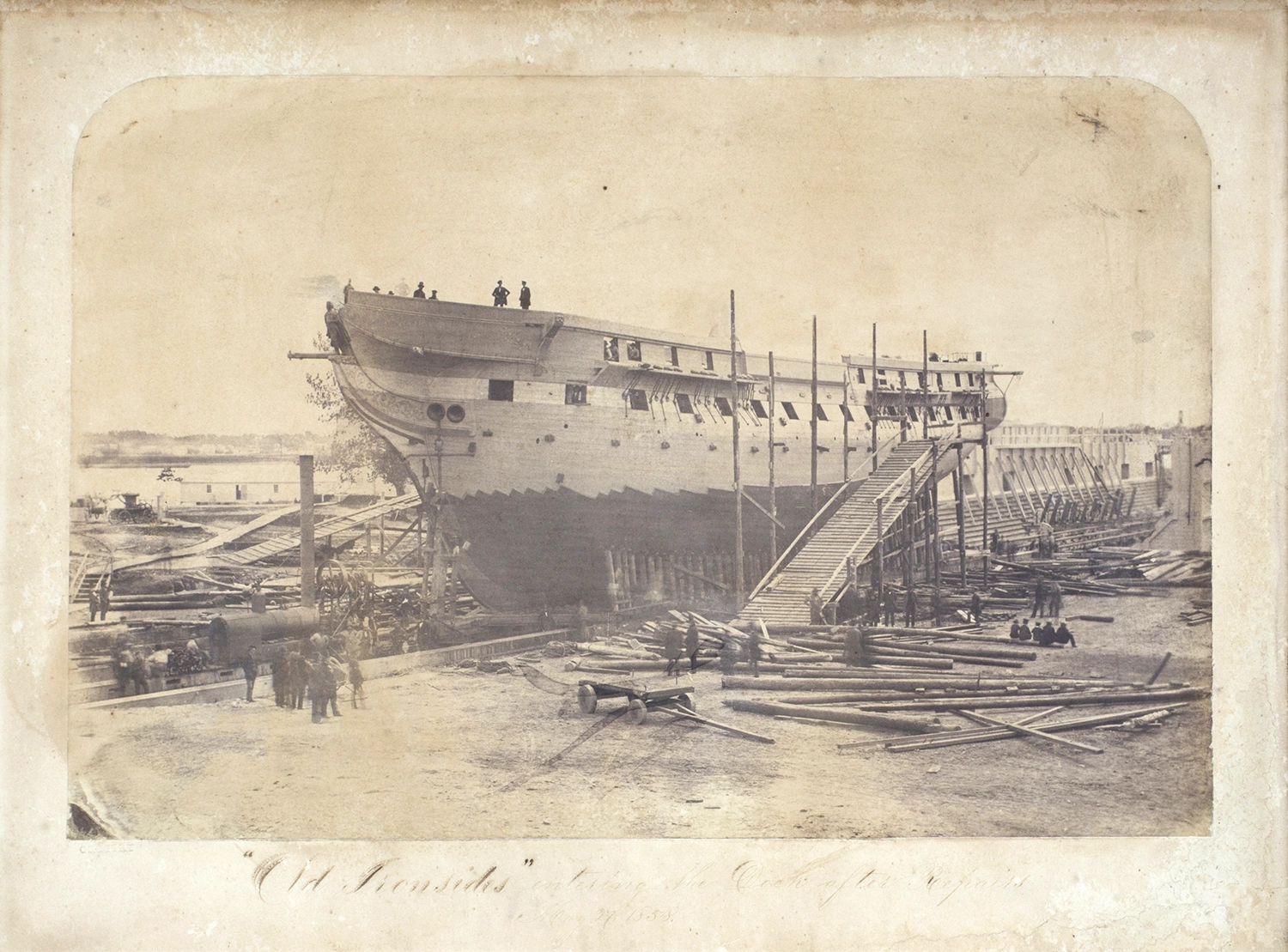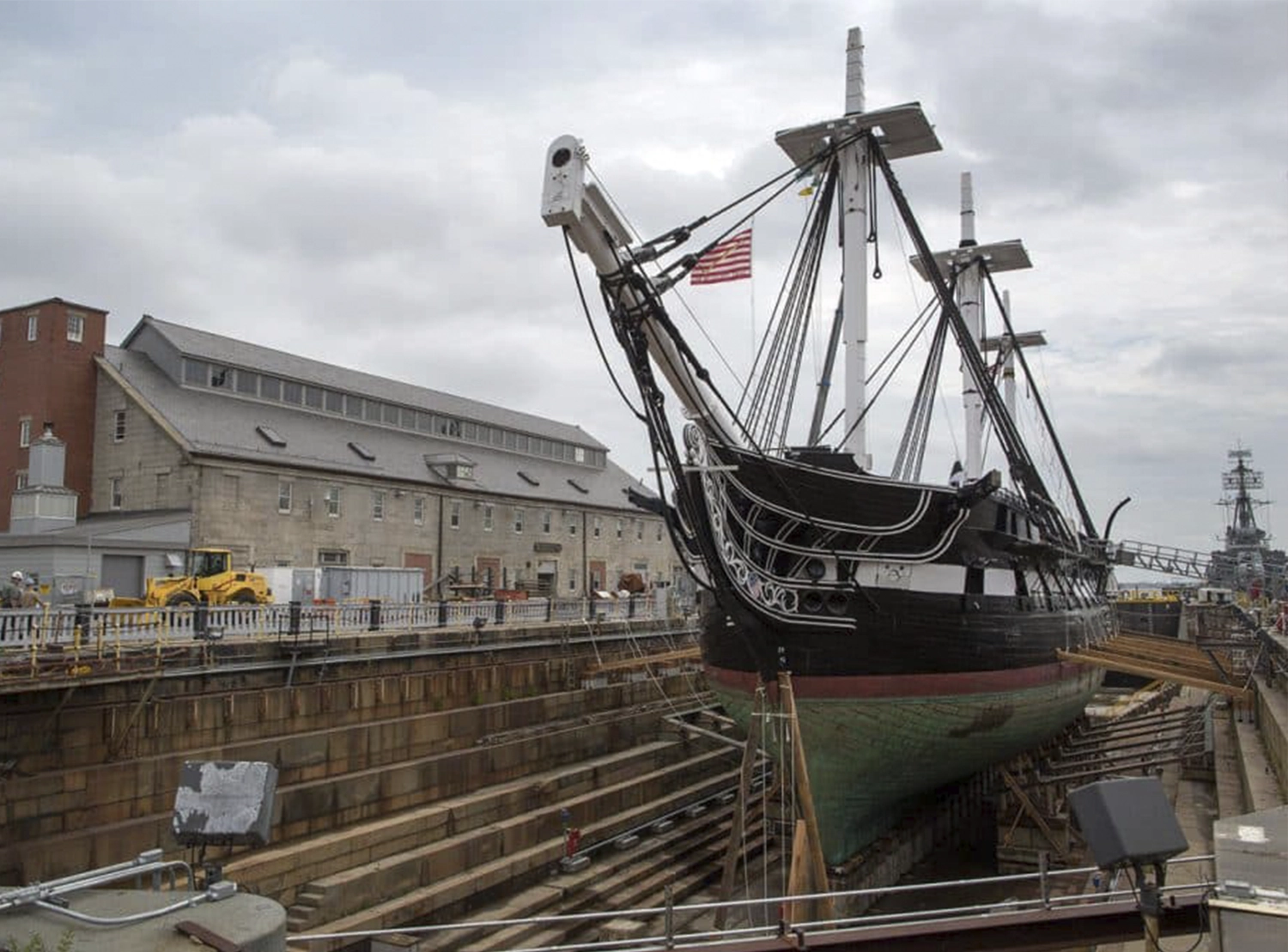 Something close to a real-life ship of Theseus: the USS Constitution, built in 1797. The first photo, from 1858, shows it under repair at the Portsmouth Navy Yard; in the second photo, at the Charlestown Navy Yard in 1927, it is undergoing a three-year restoration involving the “renewal” of 85 percent of the ship; and finally, after a major round of repairs in 2015, little of the original wood remains.