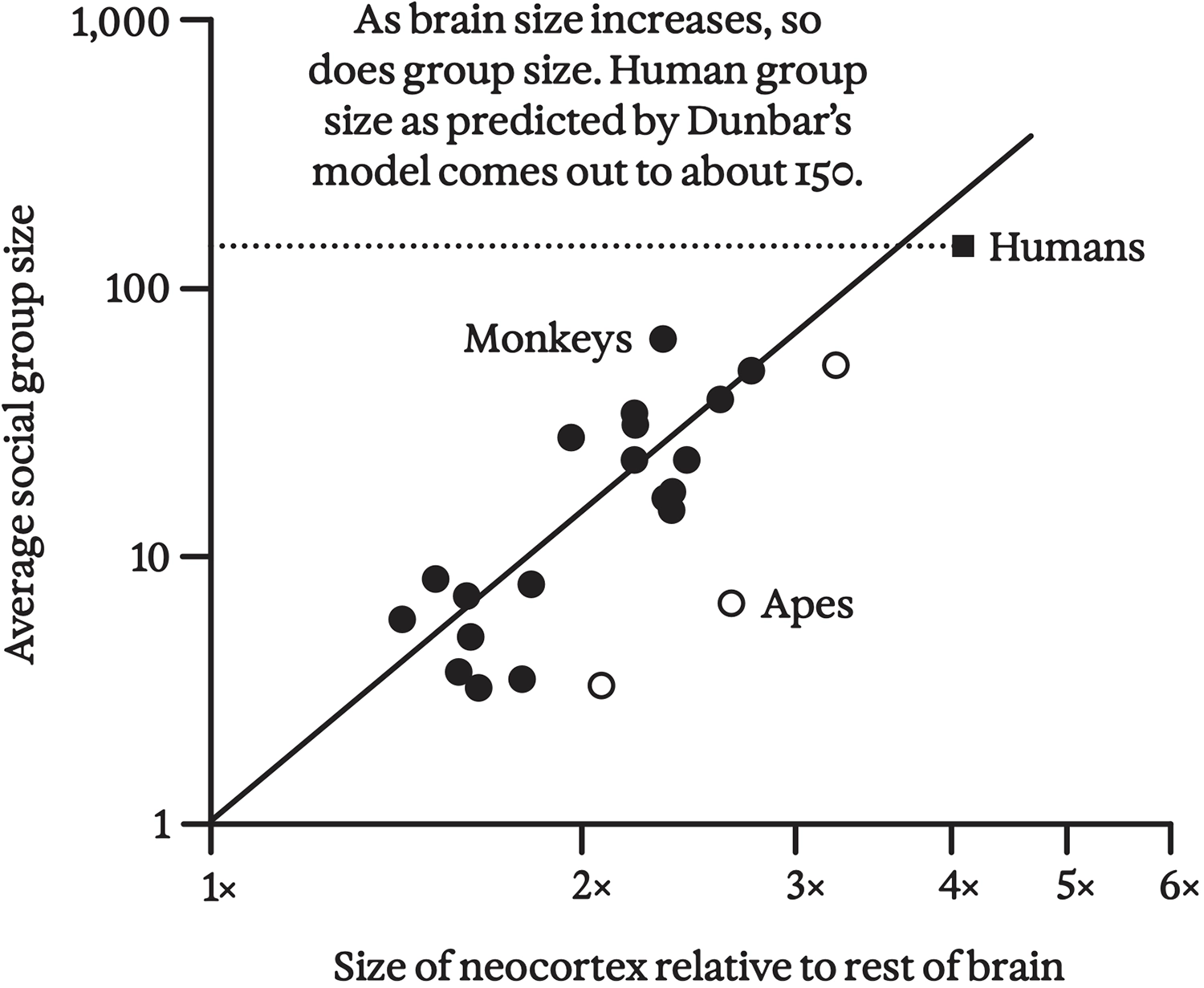 In the 1990s, evolutionary psychologist Robin Dunbar and colleagues used comparative brain-size measurements across species to advance the closely related “social brain hypothesis,” which holds that the rapid increases in brain size evident in hominins and cetaceans (whales and dolphins), among others, arise from mentalizing one-upmanship.31