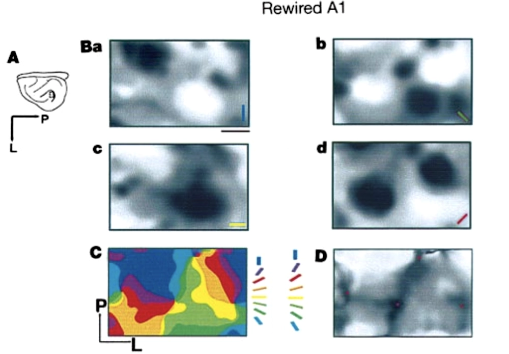 Sharma, Angelucci, and Sur 2000. Note that the claim has recently been challenged by some researchers, who argue that apparent instances of cortical remapping (especially after brain trauma) are illusory, and merely reflect greater use being made of pre-existing, latent capabilities in neighboring areas of cortex; T. R. Makin and Krakauer 2023. It is indeed likely that cortical maps with well-defined boundaries are somewhat of an illusion. However, to me, the evidence—both from neuroscience and from machine learning, where the same neural net architecture can learn to process very different inputs—suggests that cortical remapping is real, and explains how it could occur without requiring a radically altered architecture or learning algorithm. ↩