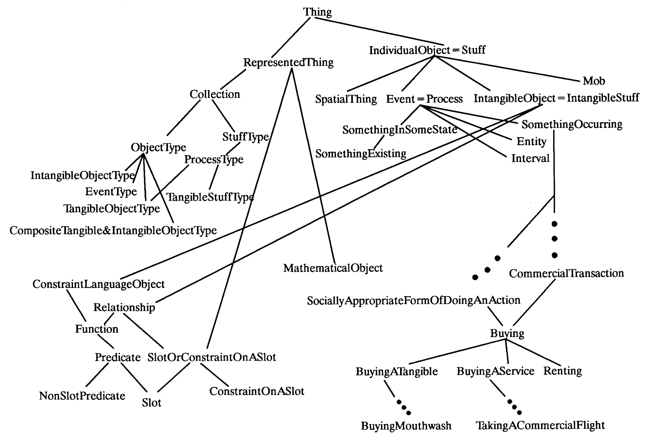 A small subset of the five thousand or so relationships that had been manually defined in the Cyc system by 1990; Guha and Lenat 1990.