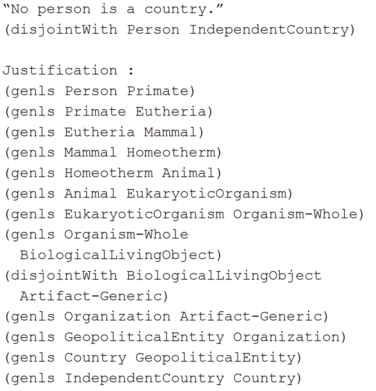 Cyc working to “justify” the sentence “No person is a country”; Reed and Lenat 2002.