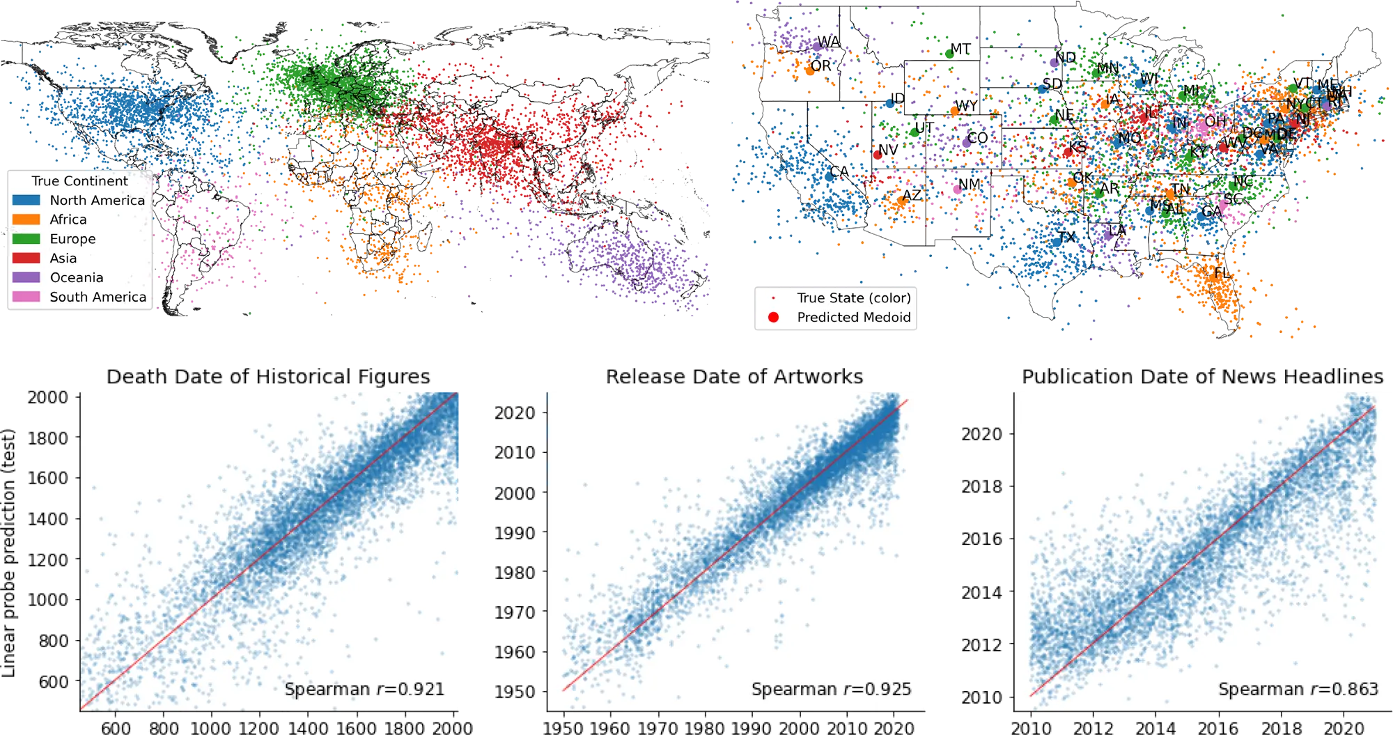 Marjieh et al. 2023. Researchers have also found that language models build internal representations of space and time on multiple scales; Gurnee and Tegmark 2023 ↩